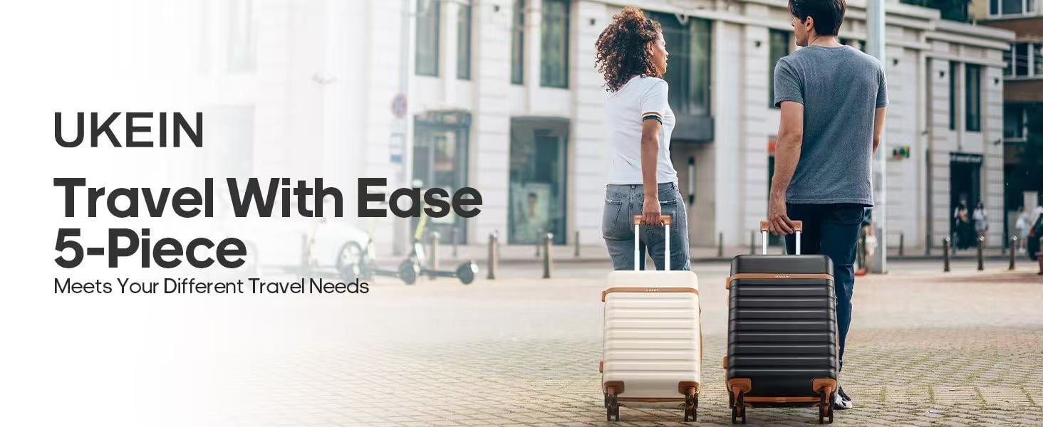5 Piece Sets: Joyway luggage set includes 20 inch carry on luggage, 24 inch checked suitcase and 28 inch large luggage, with a weekender travel bag and a toiletry bag. The uniform color matching and stylish design provide more fun for your travels.