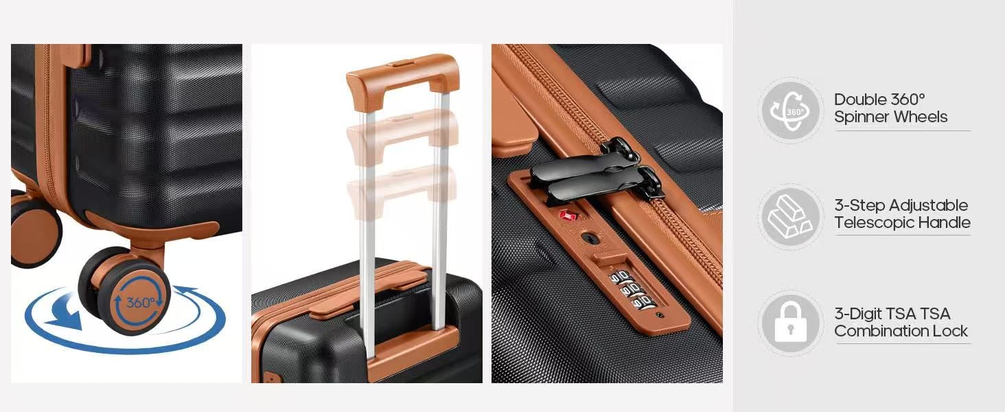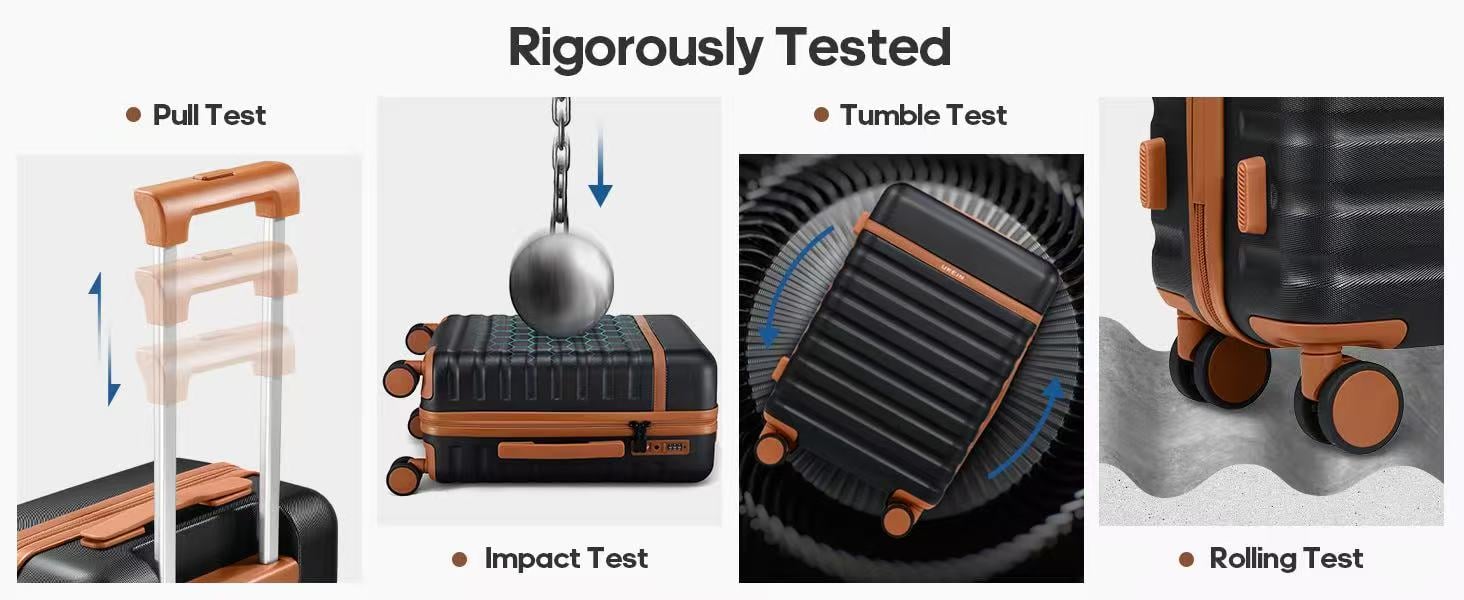 Multi-directional Swivel wheels: Equipped with premium 360° double spinner wheels, our luggage offers a quiet and smooth ride. These wheels have undergone extensive professional testing, including rolling, shock, walking, and fatigue tests, to ensure optimal performance and durability, even in the most demanding travel conditions