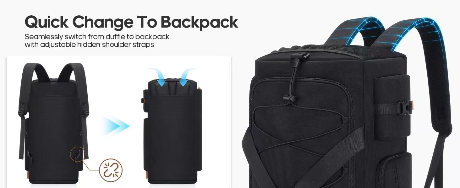 ✅ Versatile Carry-On Backpack: The included travel duffel bag can be easily converted between a backpack and a duffle bag, with multiple compartments to keep your belongings organized.
